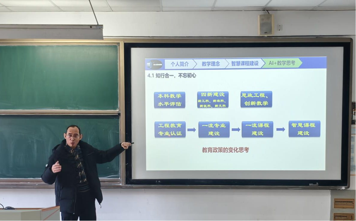 马兴录以“AI背景下的教学思考”为主题,结合自身30多年工作经历和思考,特别是课程建设与教学比赛经验,从教学理念、智慧课程建设、AI教学思考三方面,系统阐述了独具特色的“境教”教学理念,分享了“境教”理念指导下,研发、课程、育人三位一体的国家级一流课程建设情况,交流了对人工智能的认识、人工智能辅助教学模式创新的方式,指出了人工智能时代人才培养方向从知识传授向能力培养的深层转变。